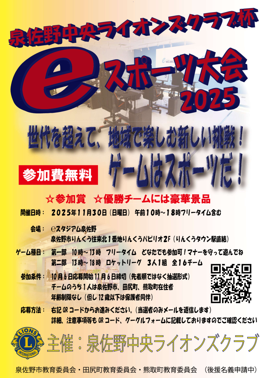 2025年11月30日(日)eスタジアム泉佐野でeスポーツ大会を開催します!